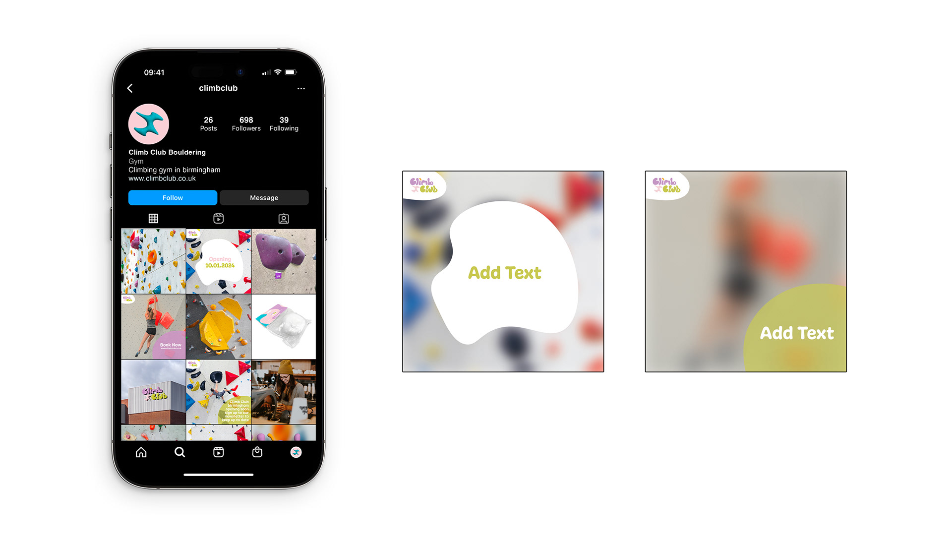Climb Club is a cutting-edge bouldering gym set to make its mark in the heart of Birmingham. Beyond being a mere fitness destination, Climb Club envisions itself as a vibrant community hotspot, poised to redefine the bouldering scene. They wanted their branding to be a vibrant expression of the values they hold dear, branding that echoes the spirit of fun and inclusivity. Climb Club is unlocking a world of possibilities for everyone, from seasoned climbers to beginners exploring the joys of bouldering, fostering a community united by the shared passion for this awesome sport.